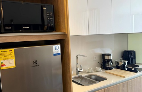 Este acogedor loft en Bogotá es el refugio perfecto para tu estadía en la vibrante capital colombiana. Totalmente equipado para brindarte comodidad y placer, cuenta con una cocina completa que te permitirá preparar tus comidas favoritas con facilidad. La mesa multiusos en la sala es ideal para disfrutar de una buena comida o para trabajar, brindándote la flexibilidad que necesitas durante tu visita. Con capacidad para recibir cómodamente hasta 4 personas, este espacio resulta ideal tanto para viajes en pareja como con amigos o familia, donde podrás descansar y disfrutar de momentos inolvidables.