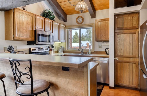 Ideal for that next ski-cation or romantic getaway, this updated, yet comfy condo is close to Mammoth Mountain and Eagle Lodge! It has a full kitchen, warming pellet stove, and on-site amenities including a pool, hot tub, and sauna. Surrounded by aspens and conifers, you'll surely enjoy the views from the secluded balcony. After a day of playing in the snow, you can cook some comfort food in the fully-equipped, updated kitchen, then crawl on the sofa and watch your favorite show while warming up by the pellet stove. Regardless of who you bring along, this peaceful location is perfect for small groups of friends or family!