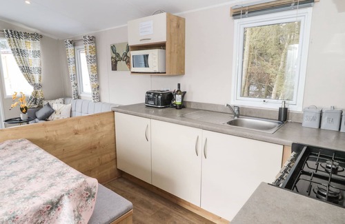 Amenities: Gas central heating. Gas oven and hob, microwave and fridge/freezer. Smart TV and WiFi. Fuel and power inc. in rent. Bed linen and towels inc. in rent. Off-road parking for 1 car. Enclosed decking with furniture and enclosed, side patio with furniture and hot tub. 1 small well behaved dog welcome. Sorry, no smoking. Shop and pub 0.7 miles. Note: There are three steps up into the holiday home, please take care. Note: Guests have access to tennis courts and golf course. Note: One of the twin bedrooms is slightly smaller than the other. Please Note: There is A Pet Supplement 0f £30