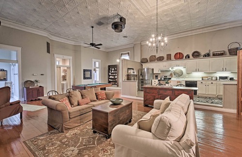 Make yourself at home in this historic building that was once a speakeasy in the 1920s. The loft-style apartment is full of small-town charm and everything you need for a comfortable stay. Unwind on the living room sofas while watching a show on the cable TV.
