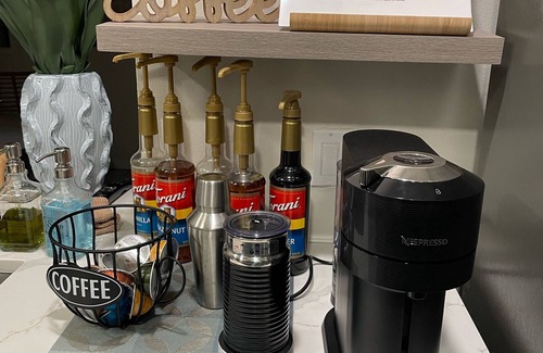 KITCHEN: Fully equipped with stainless steel appliances, Nespresso coffee maker & other coffee + tea maker options, air fryer/toaster oven, water filter, ice, Crock-Pot, spices, dishware/flatware