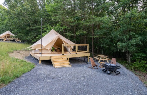 Relax in the beautiful Appalachian Mountains with easy access to hiking, tubing, fishing, swimming and horse back riding - all within a 10 minute drive. Just a few minutes from the heart of Berkeley Springs, shops, dining and local cuisine, state parks and unlimited possibilities. Bring your clothes, food and a water bottle and you will be set for a hotel-like glamping experience with a king bed and upscale touches and private outdoor space to enjoy the night sky. This site is dog friendly.
