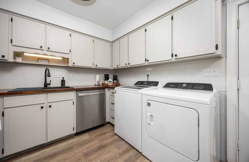 The kitchen is fully stocked with all the basic cookware, utensils, and dishes you'll need to prepare meals for the entire family.