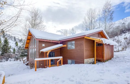 Relax at this newly remodeled, spacious, mountain view home with fireplace, outdoor deck with grill, 15 minute drive to town / ski slopes. Enjoy Porcupine Creek from an adjacent fire pit. This multi-story home is 11 miles South of Jackson in a serene residential neighborhood close to the Snake River.