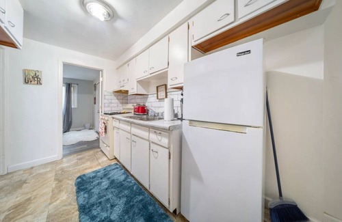 Parking is available in the driveway for up to 3 cars parked single-file, and free street parking is also available. Parking is also available in the one-car garage; lift to open door. Driveway is shared with the neighbor, so please do not park on her side. Guests and Visitors must comply with all parking regulations and requirements. Please show consideration for other vehicles in the neighborhood. Do not park on the grass or on neighboring properties.