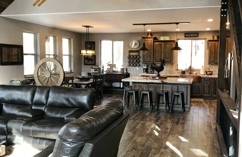 Newly built in 2017, 4 bed 3 bath cabin in Forest Lakes Estates. Large open vaulted family room with gorgeous barn wood ceilings. Stunning gas rocked fireplace that will keep your warm during the winter months. The kitchen is open & spacious w/ large granite island & 6 bar stools gather around. Stainless appliances & large dining table that can seat 8. Beautiful picture windows looking out to the forrest. Wraps around deck perfect for entertaining and to enjoy the great outdoors. On the main floor are 2 good size bedrooms w/ king sized beds. Full bath on the main floor w/ double sinks, tiled shower & private toilet. Laundry room w/ washer & dryer. In the basement is a family room w/ large sectional sofa & TV. There is full bath & bedroom with a queen size trundle with full bed under. The spacious vaulted master suite w/ king sized bed @picture windows looks out to the tall pines. Master bath has double sinks, large tiled shower. The cabin is decorated with a rustic & industrial flare. Everything you could need and more for large families or groups. Kitchen is equipped with all big & small appliances and plenty of cookware. The property is over an acre of woods to play, several walking & riding trails are near by. Forest Lakes offers several lakes to visit: Woods Canyon, Willow Springs, Bear Lake, Black Canyon, Knoll, & Chevlon. Fishing & small 10 h.p motors boats are permitted. There is a large fishing pond .5 mile from cabin. The cabin is just a few miles away from the Mogollum Rim with breath taking views & lots of outdoors activities. Heber is just 20 minutes & Payson 30 min away. It's is easy 2 hour drive from the Valley. Come check us out Forest Lakes Mountain Getaway on Social Media. Enjoy the mountain air.