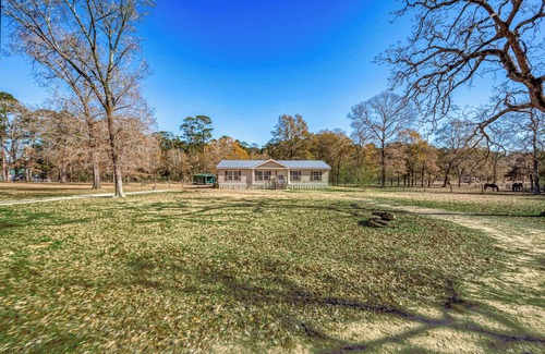 Close to Lake Conroe and Sam Houston National Forest this 3-bedroom manufactured home in Richards is perfect for your escape. Wake up and enjoy listening to the birds and watching deer roam as you sip morning coffee on the back porch. With a king bed, queen bed, and full bed, guests will feel right at home.