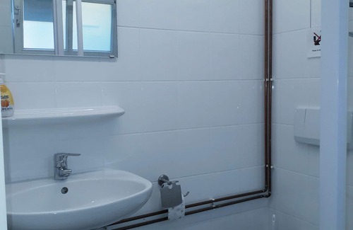 GeneralElectric kettle, Ping - 1.2, Number of bedrooms - 1, Toilet paper, Stovetop, Shared bathroom, Free wired internet, Espresso maker, In-room climate control (heating), Square feet - 43, Shampoo, Bed count minimum 1, Bed sheets provided, Free WiFi, Kitchenette, Number of bathrooms - 0.5, Microwave, Shower only, Dryer, Pets not allowed, Towels provided, Soap, Air conditioning, Free toiletries, Cookware, dishware, and utensils, Washing machine, Heating, Desk, Separate sitting area, Square meters - 4, Refrigerator, Bed count maximum 1 |
