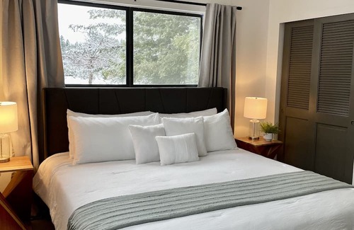 This unique property features a spacious deck with uninterrupted forest views for many miles into the distance, providing a relaxing, tranquil, and stress relieving environment. The main living space centers around a vintage Fisher wood burning fireplace, providing smoke free burning while adding extra warmth to the space. Enjoy food, games, and conversation in this part of the house around a contemporary dining table that comfortably seats 6-8 people. You can enjoys the views outside or watch your favorite content on the smart TV nearby. A spacious master bedroom with a comfortable memory foam mattress, two closets and a large bathroom including a dual sink vanity, shower and bathtub. Upstairs bedroom with beautiful views, downstairs bedroom with computer desk, and a third upstairs bedroom with bunk beds ideal for kids. Game room includes a pool table that converts to a ping pong and board game table, an entertainment center with a smart TV, shelves full of board games including indoor basketball arcade. A luxury hot tub with forrest views, fully stocked kitchen, family board games, various game activities, outdoor dining and much more. From hiking to paddle boarding, kayaking and mountain biking, to nearby wine tasting and snow sports, activities are numerous and diverse.
