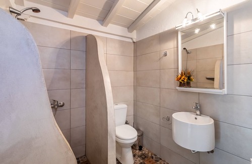 Villa Ambeli is located 7km from the center of Skopelos at the top of the green cliff over the Town. A quiet neighborhood where you can enjoy the magic of Skopelos’ nature in combination of the easy access to almost all beaches of the island (by car). The villa includes 2 bedrooms,one with a double bed and the other with 2 singles,two wonderful brand new bathrooms and an amazing sitting room-kitchen area decorated in traditional style.