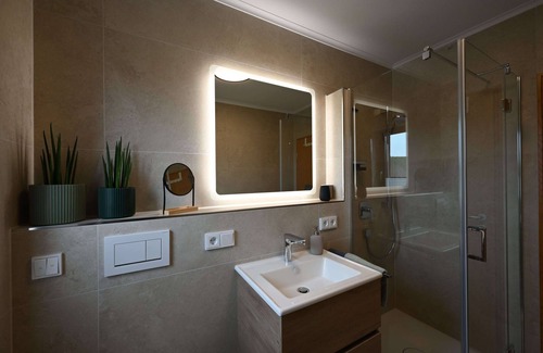 Das geräumige 1-Zimmer-Appartment (ca. 45 qm) ist ausgestattet mit Küche und einem hellen Bad mit Dusche, WC und Fön. Im Schlaf-/Wohnbereich befinden sich ein Doppelbett, sowie eine Schlafcouch. Genießen Sie die ruhige Lage des Weingutes am Ortsrand, direkt neben der Kastanienallee. Unsere Ferienwohnung ist ein idealer Ausgangspunkt für ihre Ausflüge und Erkundungen. Egal ob die kurzen Wege zum Mainstrand (nur 3 Gehminuten) oder eine Weinbergswanderung (nur 5 Gehminuten zum "Nordheimer" Lehrpfad), wir liegen mitten drin. Und nicht nur in Nordheim, sondern auch an der Mainschleife. Lassen Sie ihr Auto doch einfach (auf einem Parkplatz in unserem Hof) stehen und kaufen Sie in den Dorfläden um die Ecke ein. Starten Sie den Tag ohne Hektik und lauter Betriebsamkeit. Gut gestärkt locken die nahen Ziele Mainfähre, Vogelsburg, Escherndorf, Aussichtspunkt Nordheim, Sommerach, Volkach, etc. allesamt in Wander- oder Radentfernung.