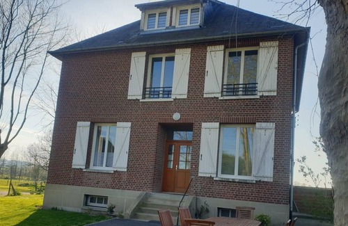 In an old farm, semi-detached house from the 1950s with garden, Ground floor with 5 steps: - entrance opening onto landing with coat rack, - fully equipped separate kitchen, - bright living room with connected flat screen TV (Netflix access), sofas, armchairs and dining table. On the 1st floor: - 1 double bedroom with 2 bunk beds (90x200cm), - 1 double bedroom with 1 160x200 cm bed, - shower room with wc, washing machine and dryer. On the 2nd floor: - 1 bedroom with 2 90x190 cm beds and a desk. Cot and high chair available. Private garden furniture with barbecue. Possibility to rent the two adjoining gites for 12 people (G6132). Unsecured pond nearby. In a quiet hamlet of Mesnières en Bray, on Avenue Verte, semi-detached house from the 1950s with garden in an old farmhouse. Pedaling or walking on the Avenue Verte and visiting Neufchâtel and the Château de Mesnières will also give you a lot of pleasure. The proximity of the A28 allows you excursions to Rouen, Dieppe, the Baie de Somme ... Do not miss the Neufchâtel, renowned local cheese, the cider of Félix, the organic vegetables, the biscuits of Lucie and the panoramas of the Country from Bray! Rental charges not included in your rental: - electricity (billed at cost price above 8 kw/h/day), - heating, - sheets, - bathroom linen, - Household chores, - the tourist tax. Television, Electric heating, Baby cot, Internet connection, Private car park, Washing machine, Dishwasher, Linen rental, Cleaning fee, Terrace, Tumble dryer, Microwave, Hi-Fi system, Flat screen TV, Freezer, Garden furniture, barbecue. Option to be paid on site: Cleaning charge: €80. Sheets for a single bed: €15. Sheets for a double bed: €15. Household linen kit (towels): €6. Unless stated, services such as cleaning, bed linen, towels etc. are not included in the price of this rental. If pets are allowed (information in the advertisement), charges may be applicable. Only equipment mentioned in this advertisement are present. Equipment not mentioned are not considered to be present.