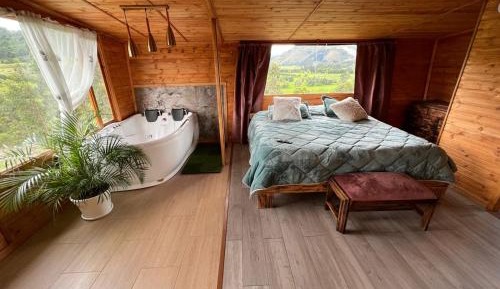 9 miles from Tota Lake in Iza, Glamping Los Hayuelos offers accommodations with access to a hot tub. This property offers access to a terrace and free private parking. This campground comes with a seating area, a fully equipped kitchen with a toaster, and a flat-screen TV. Guests can take in the views of the mountain from the balcony, which also has outdoor furniture. For added privacy, the accommodation features a private entrance. Guests can relax in the garden at the property. Manoa Parque is 16 miles from the campground. The nearest airport is Juan José Rondón Airport, 17 miles from Glamping Los Hayuelos.