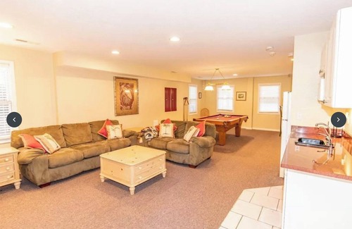 This beautiful and spacious home (over 4200 sq ft) is situated in the heart of the Town of Duck on the Beach Side of Duck Road. It’s an easy 8 min walk to the beach, the Sound, and the quaint downtown with locally owned stores, fantastic restaurants, and the Boardwalk. Enjoy exploring the town, take morning walks for coffee and donuts or treat your family to ice cream from one of the local shops. The ocean and the beach is just a short walk down our very quiet, live oak lined street. We also include use of a New Bintelli golf cart to help you get all of your gear to the beach. The outdoor living area and backyard are a true oasis, with its private salt-water and solar-heated pool (April-October) and new optional add-on electic heater available that will keep pool at 85+ degrees. Hot tub, gazebo, grill, and lawn games to play on our spacious enclosed yard, a rare amenity in this area. If you’re looking for a quiet place to relax, head out on one of the many decks with plenty of seating and porch swings. The kitchen is fully stocked and equipped with everything you might need, and has almost two of everything including range ovens, dishwashers, and microwaves. Full size laundry rooms on the first AND second floor. Large game room with a billiard table, video games (PS3), movie library, wet bar with second fridge and ice maker that provides entertainment for all. This is a vacation that your family will remember forever!