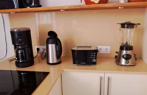 Kitchen: Coffee machine; Dishwasher; Freezer; Fridge; Induction stove; Microwave; Oven; Toaster; Water boiler