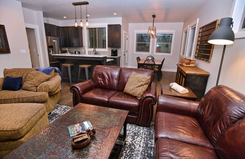 Home on the Range provides guests with a modern, luxurious mountain escape in McCall. Located in the prestigious Spring Mountain Ranch development, this 3-bedroom, 2-bath house has comfortable beds and cozy linens for six. The house was built in 2020 and is located on a quiet cul-de-sac that backs the golf course and provides uninterrupted views from the dining room, master bedroom and is perfect for peaceful evenings on the covered front porch. The house features a premium kitchen with a gas stove including a griddle, steam and convection oven. The kitchen is also stocked with a Keurig, insta-pot, air fryer, crock pot and a convection microwave for quick meals. A gas fireplace provides warmth and ambiance throughout the house during the chilly McCall nights.