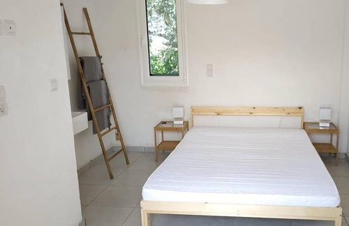 The house features cleaning products, air conditioning, a washing machine, ironing equipment, mosquito nets and a vacuum cleaner.