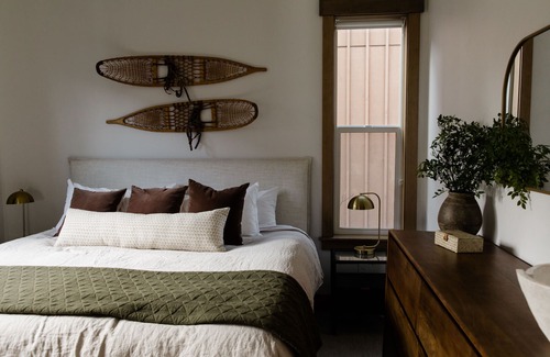Escape the winter blues and replenish at this incredibly sunny cabin, featuring floor to ceiling east facing windows overlooking a serene tree-lined meadow. Watch the sunrise with a morning cup of coffee from the living room or hot tub, and you may even spot elk grazing in the meadow. 6 adirondack chairs encircle the warm gas fire pit outside ready for stargazing. Inside the living room you'll find seating for 6 on two comfy sofas, plus 2 chairs anchored by a cozy gas fireplace. The dining table seats 8 comfortably plus 3 bar seats at the quartz island.