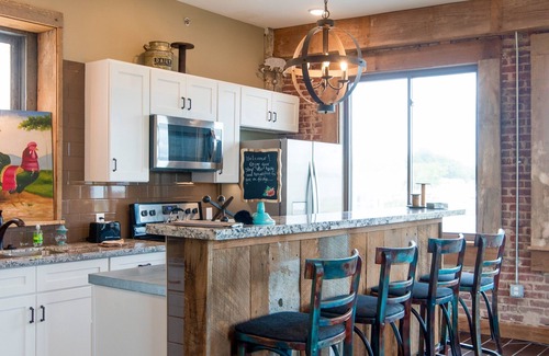 THE LOFTS at VAULT Suite 402 is a one bedroom with a Queen Bed and a queen size pull out sleeper couch. This rustic loft has a full kitchen. We have combined the 1890's building with modern design. It is situated on the 4th floor above Hot Springs' 5-star restaurant VAULT. You are in the heart of historic downtown Hot Springs, AR. The entire property is strictly NON-SMOKING and NO PETS ALLOWED. Street level parking is available, also a parking lot with a parking pass one block away.