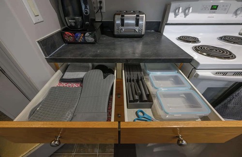COMPLEMENTARY AMENITIES: We provide a starter pack of essentials, including coffee, salt/pepper, sugar, paper towels, toilet paper, dish soap, hand soap and other basic essentials to get you started. This covers most stays, but longer stays may require additional supplies, which will be the guest's responsibility to restock.