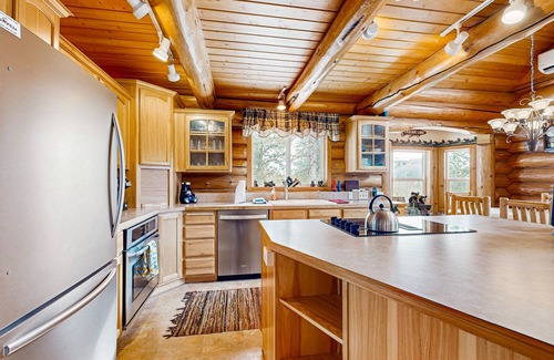 This beautiful lake view cabin makes a wonderfully cozy retreat near Lake Cascade, but still offers all the modern amenities of home! Sip your coffee among the pine trees as you step out onto the spacious deck, or curl up by the fire in the stunning living room with custom-built log features. After a long day of hiking, snowmobiling, or mountain biking, enjoy a soothing soak in the master suite's luxurious tub. There's a gas grill on the outdoor deck; this is the ideal place for fun-filled gatherings with your group.