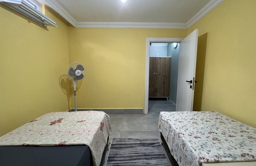 This flat brend new with 85 meter square and a big balcony. it is in a silent place with international families. Swimming pool is big and silent. markets and the bus staion is too close. lara beaches are 800m over flat. a refrigirator ,washing machine , smart tv, ankastre oven , dishwasher and air condition Kitchen equipments are enough for 3 person. A bed for 2 person and a sofa in sallon. OUT OF USE SWİMMİNG POOL İN OCTOBER-JUNE d.1
