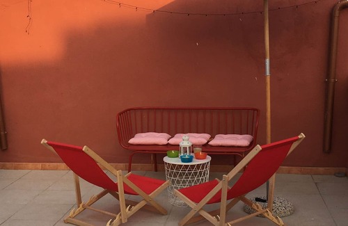 On two floors, it consists of three double bedrooms, living room, kitchen, bathroom, private outdoor courtyard with barbecue, double terrace above.