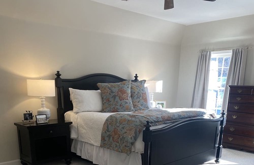 Primary bedroom with king bed and attached bath