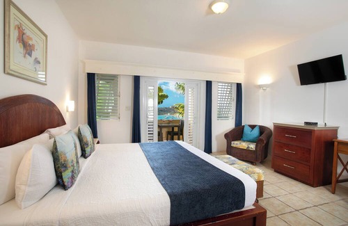 Equipped with a full small kitchen, 1 King bed only, Lounge area, Dining area, Air conditioning, Cable TV, WiFi, balcony or patio. LaVue has a front desk and housekeeping is included so you can relax and enjoy Anguilla! Photos descriptive of quality, decor may differ.