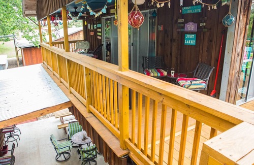 You will have a great time at this vacation location to gather with friends and family or even just to get away from it all. There is plenty to do on property as well as off. Enjoy the comfortable easy going -settings of this home or to take advantage of nearby beautiful Lake Whitney as well as other activities in Bosque County, Texas. This home sleeps up to 16 people, having three bedrooms each with a queen size bed, and two bathrooms. There additionally are three queen sleeper sofas and a full size set of bunk beds. The upstairs has a wrap-a-round balcony and covered porch area with a lake view. We have a large upstairs living/dining area, gallery style kitchen complete with dishwasher and microwave. Downstairs also has a great secondary living area which is fantastic for the kids. We have a large covered patio along with an outdoor bar area complete with sink and refrigerator, also known as "Molly's Texas Cantina." We also have plenty of parking for boats and extra vehicles. There are three charcoal grilling options under a covered shack. Lake Whitney is a 15-minute walk or 3-minute drive to Walling Bend Park or stay and enjoy the many amenities that are available on the property. There are horse shoe pits, ping pong, darts, volleyball, washers, crochet, bean bag toss and many other games as well as a blue tooth radio system to enjoy your favorite music. Our views are great and so is the nature that visits the property. There lots of beautiful birds in our area to watch. Deer commonly visit as well as an occasional fox or two. The home is located in a lake subdivision right outside Walling Bend Park with a free boat ramp (FM 2841). We will be happy to answer any questions that you might have. Thank you for looking at our location!