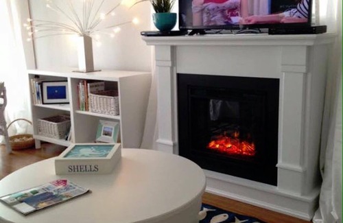 "Fish Cottage" is really a bright END UNIT (the only one!) whimsically yet tastefully decorated condo. It will make you smile! One bedroom has a comfy king size bed and the second bedroom has two comfy twins. The kitchen/ living area is open concept (see pics) and includes an electric fireplace, a TV, DVD player and 20 movies. There is a lovely kitchen nook for breakfast in the morning and board games and cocktails in the evening. The bathroom was just renovated. Lovely! Multiple month discount available!! (FYI: This community is very quiet in the evening. That may or may not work well with your vacation plans :) )