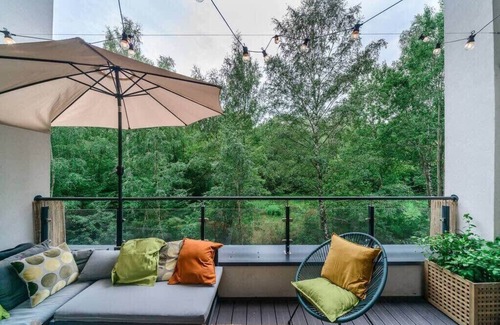 Lumina 2-level apart with terrace is located in Lodz. Lumina 2-level apart with terrace provides accommodation, featuring Balcony/Terrace, Bedding/Linens, Wellness Facilities, among other amenities. This Apartment features Balcony/Terrace, Bedding/Linens, Wellness Facilities, to make your stay a comfortable one.