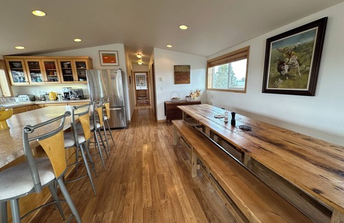 Discover this elevated 2-bedroom gem on a working flower and horse farm just 20 minutes from Bend. This loft apartment, with 270-degree views or surrounding buttes and pastures, features a great room, comfortable queen master bedroom, cozy twin bedroom, full kitchen, laundry, bath and a private and includes a fine arts library. Access to the Badlands Wilderness Area and Reynolds Pond are only 2 minutes away and Brasada Resort Restaurants are just 10 minutes down the road. With amenities like AC and WiFi, guests can relax and unwind in a peaceful setting after exploring all that bustling Bend and recreation-rich Central Oregon have to offer.