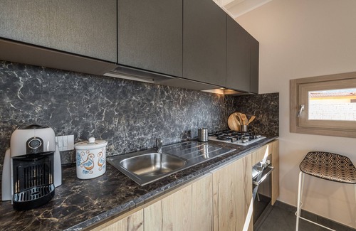The beautiful Villa Sa Rocca Manna is located in the village of Chia and is part of a complex that consists of 3 villas with private entrances and outdoor spaces. This holiday home combines modern comfort with rustic charm and has 2 floors. It consists of an open-plan living room with a sofa bed, a dining area and a well-equipped kitchen, 3 bedrooms (one of them with a double bed and a single bed) as well as 2 bathrooms (one of them with a luxurious rain shower). The house can therefore accommodate 9 people. It is stylishly decorated and equipped with high-quality furniture to ensure a perfect holiday experience! Moreover, it has Wi-Fi, air conditioning and a satellite TV. The highlight of the accommodation is the fantastic outdoor area with sea views and a beautifully lit pool at night. This is surrounded by a wall to guarantee a high degree of privacy. Enjoy delicious, freshly grilled meals, sunbathe on the comfortable lounge cushions or have a glass of wine under the starry sky. Here you are guaranteed relaxed holiday hours and the stress of everyday life is quickly forgotten! A supermarket and a small selection of restaurants are only 200 m or 3 minutes on foot from the property and the sandy beach Spiaggia di Chia Sa Colonia is 2.5 km or 6 minutes by car away. The sandy beach of Spiaggia Su Giudeu can be reached in a 7-minute drive (4.1 km) and the centre of Pula with its wide variety of shops, restaurants, bars and cafés is a 22-minute drive (19 km) away.