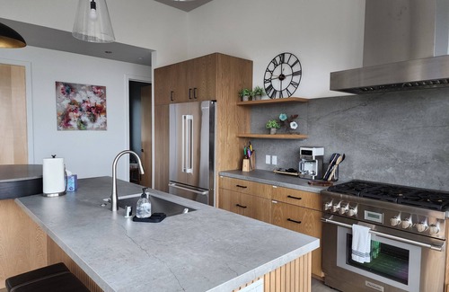 The house is newly constructed and has been designed with a low carbon footprint in mind. It has a large solar panel system, battery backup (so don't worry about blackouts), and carbon-free heating.