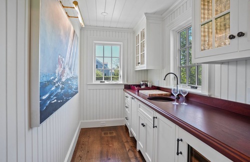 This Martha’s Vineyard compound is situated in the exclusive Edgartown Field Club, just a mile away from both historic Edgartown and some of the finest beachfront on the island. The property has two generous master suites and then three additional bedrooms for kids/guests/ The property features a main house, a Carriage House, and a pool house. with five generously sized bedrooms, each featuring en suite bathrooms. There is also a large carriage house that has a one-bed/one-bathroom suite above a massive 1st floor, complete with two bars and an entertainment area.