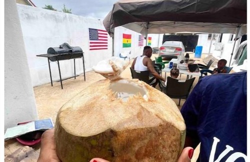 Spicy/sour Ghanaian porridge (coco), Ghanaian breakfast donuts (bofrot), non-pork sausage, eggs any style.