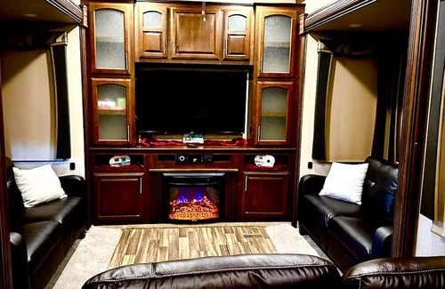 Located in Pearlington, this Luxury 5th Wheel is a dream. With a cozy bedroom featuring a king bed and a stylish living room with a queen air mattress available, guests will find this property to be a pleasant and nice retreat. Enjoy the convenience of amenities like WiFi, AC/heat, fire pit, swimming pools, on-site store, food truck, boat launch, laundry facilities and a small park during your stay. The bathroom offers a refreshing shower and a hair dryer for your convenience. You're sure to make fantastic memories with a stay at our place. Perfect for fishing, relaxing, shopping, casinos, beaches, etc. Short drive to New Orleans or Biloxi.