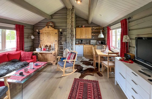 Make yourself comfortable in this open-plan log cabin with a wonderful view of the countryside is located in Nord-Torpa. Make yourself comfortable in this open-plan log cabin with a wonderful view of the countryside provides accommodation, featuring Fireplace/Heating, Child Friendly, Kitchen, among other amenities. This House features Fireplace/Heating, Child Friendly, Kitchen, to make your stay a comfortable one.