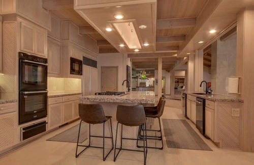 After a day of adventure, return to your private retreat. The expansive backyard features two sunny decks, a hot tub, BBQ grill, and lush perennial gardens. Inside, the air-conditioned great room offers panoramic Lake Tahoe views, while a pool/ping pong table and wet bar provide entertainment for guests of all ages. The expansive kitchen is adjacent to the second living room with a beautiful dual sided glass, gas fireplace, sitting and dining area.