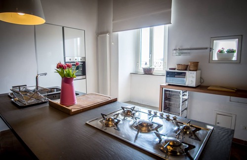 Charm and culture: a dream holiday out of time at the center of the world. The proximity with the Odescalchi Castle and the spectacular view of the Bracciano lake make this location unique, gifting it with a magic and romantic atmosphere, a charm of the past that will make your vacation unforgettable. The residence is located in a former Convent of the 15th century, in Bracciano's medieval town opposite the Odescalchi Castle and it's finely refurbished respecting contemporary interiors : exposed beams, coffered ceiling, terracotta's pianella, fireplace and original stone portals from the time are only some of its beautiful characteristics. The old structure masterfully combines with modern living comforts and offers: three bathrooms with modern showers and bath, four bedrooms, two spacious walk-in closets, a sitting room, professional kitchen with center island and large fireworks designed by the famous architect Renzo Piano.