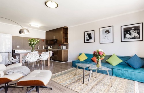 This modern apartment is situated in De Waterkant, one of Cape Town’s most trendy neighborhoods in the city's Waterfront precinct. The apartment has a breathtaking view of Table Mountain and is minutes away from the city center, V&A Waterfront shopping district and the Sea Point promenade.