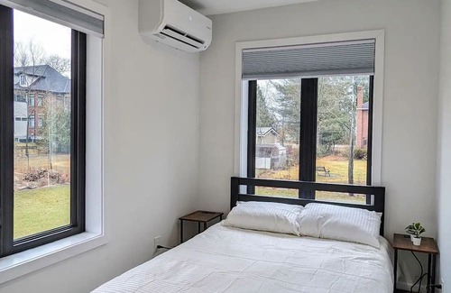This is a four season container home with 4 bed / 2.5 bathrooms over 2 floors a number of nooks located on a quiet street. It is open concept on the 2nd floor. Maximum number of people is 8.