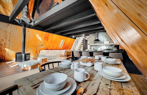 Modern Luxurious A-Frame - Playground is located in Strawberry. Modern Luxurious A-Frame - Playground provides accommodation, featuring Air Conditioner, Parking, Barbecue/Outdoor Cooking, among other amenities. This Cabin features Air Conditioner, Parking, Barbecue/Outdoor Cooking, to make your stay a comfortable one.