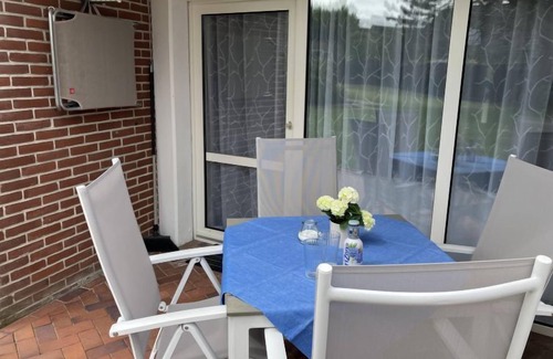 Terraced house "Muschelhaus". In the resort, 800 m from the sea, from the beach, in a cul-de-sac. For shared use: garden with lawn. In the house: central heating system, washing machine (extra), tumble dryer (for shared use, extra). Parking at the house. Supermarket 800 m, restaurant, bakery 800 m, bus stop 450 m, railway station 1.8 km, ferry 2 km, sandy beach 1.1 km, outdoor swimming pool 14 km, indoor swimming pool 850 m. Golf course (18 hole) 8 km, surf school 1 km, tennis 2 km, minigolf 800 m.