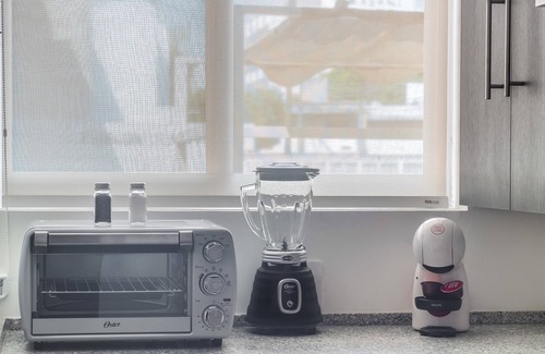 +El departamento cuenta con Sala con sofá cama para una persona y Comedor, con pantalla de 65 pulgadas; cocina integral de concepto abierto, refrigerador, horno de microondas, cafetera, lavasecadora y todos los utensilios necesarios como vajilla, sartenes que te facilitarán tu estadía.