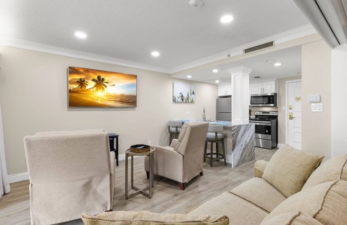 Recently renovated and fully furnished Studio, Sleeps 2 Adults and 2 Children. The studio has a full kitchen (fridge, stove, oven, dishwasher), 1 King bed, full bathroom with tiled walk in shower. The living room sofa has a pull-out queen sleeper, dining space with walk out to balcony patio. It is turn key and ready for your enjoyment. You will have access to the laundry room where you can do your laundry for free and hotel ice maker. Free parking is in the parking lot right outside your condo.