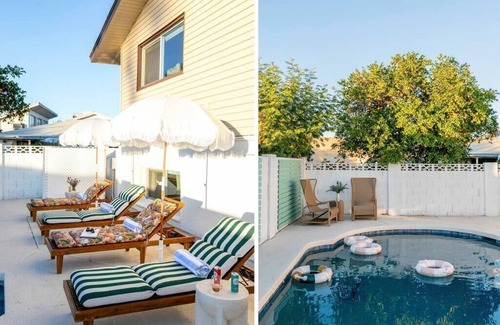 Just 10 minutes to ASU and 15 to Old Town Scottsdale! Welcome to our 6-bedroom musical haven in Tempe! The living room features a jukebox and comfy seating for all your guests. Playable instruments on the walls and a karaoke stage invites you to unleash your inner rockstar. Enjoy a fully-equipped kitchen and a backyard oasis with a sparkling pool. Conveniently located, this Airbnb promises a symphony of memories! Book now and let the music guide your stay.
