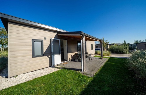 The Pavilion 5 is a ground floor, detached chalet suitable for 5 persons. The cosy living room has a sitting area and a television. In the open kitchen you will find a dishwasher, electric kettle, combination microwave and a coffee machine. In the holiday home you will find 3 bedrooms, 1 bedroom with a double bed, 1 bedroom with a single bed and 1 bedroom with a bunk bed. In addition, the house has a bathroom with shower and toilet. From the living room you step onto the terrace with garden furniture. You can park 1 car at the house and there is free WiFi.