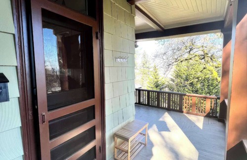 Escape to this charming 1912 craftsman apartment in Willamette Heights, steps from the largest urban park in the U.S. Enjoy stunning mountain views, a private garden patio, and free onsite parking. This 1-bedroom retreat features hardwood floors, a full kitchen, and a spacious living room with sleeper sofas. Stay connected with fast Wi-Fi, and unwind with streaming on the HDTV. Perfect for nature lovers and city explorers alike.